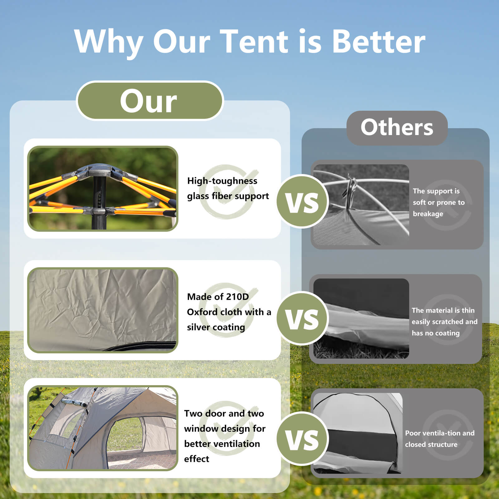 This pop up camping tent eliminates complicated setup, making it a convenient choice for fast and stress-free outdoor experiences.