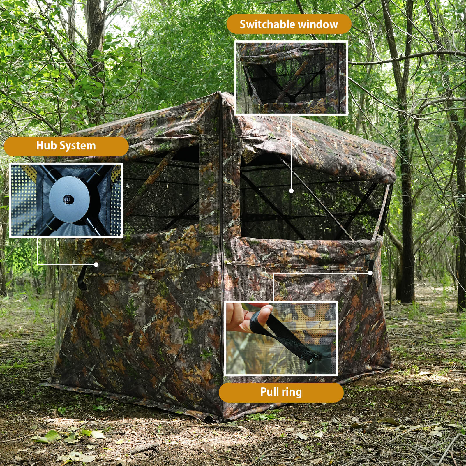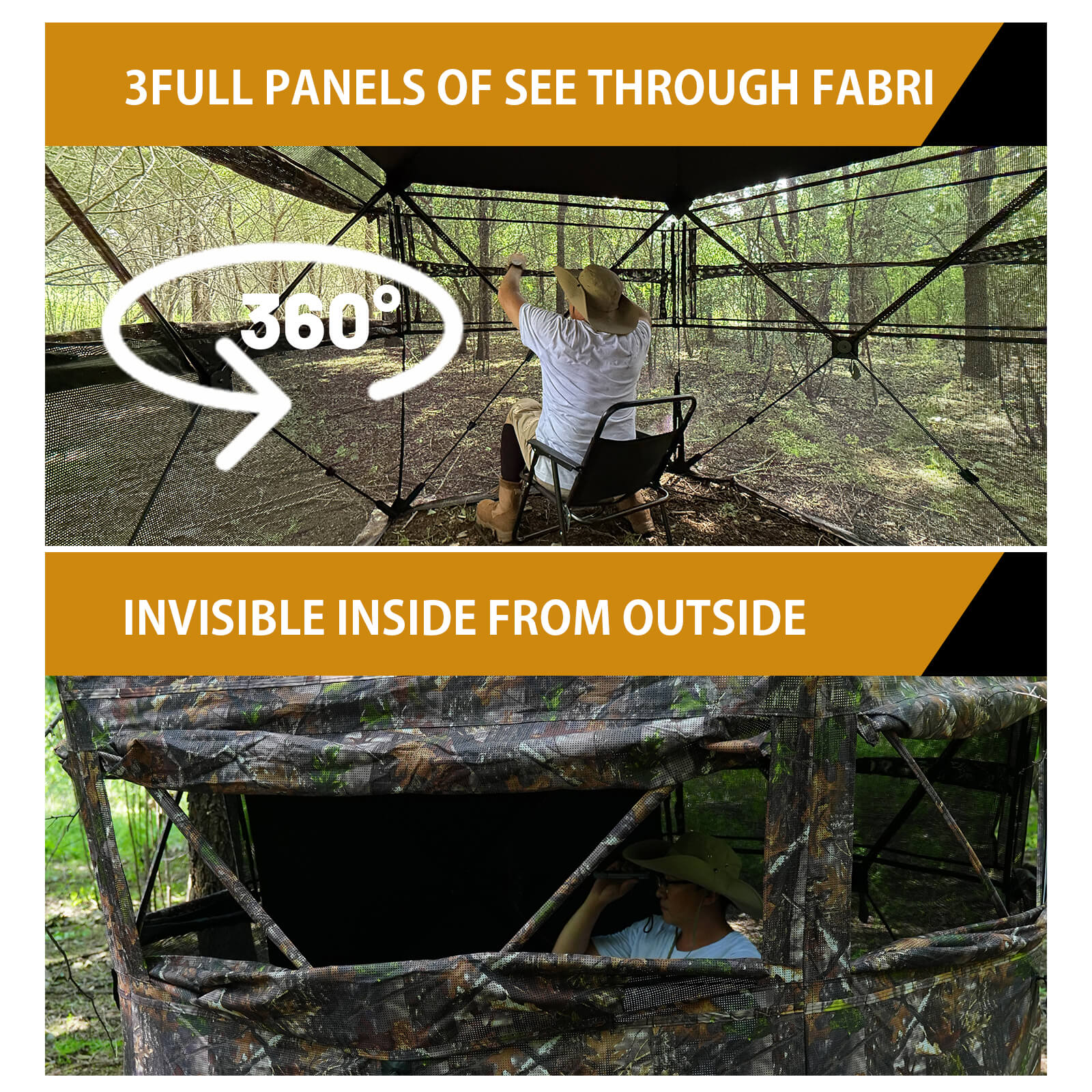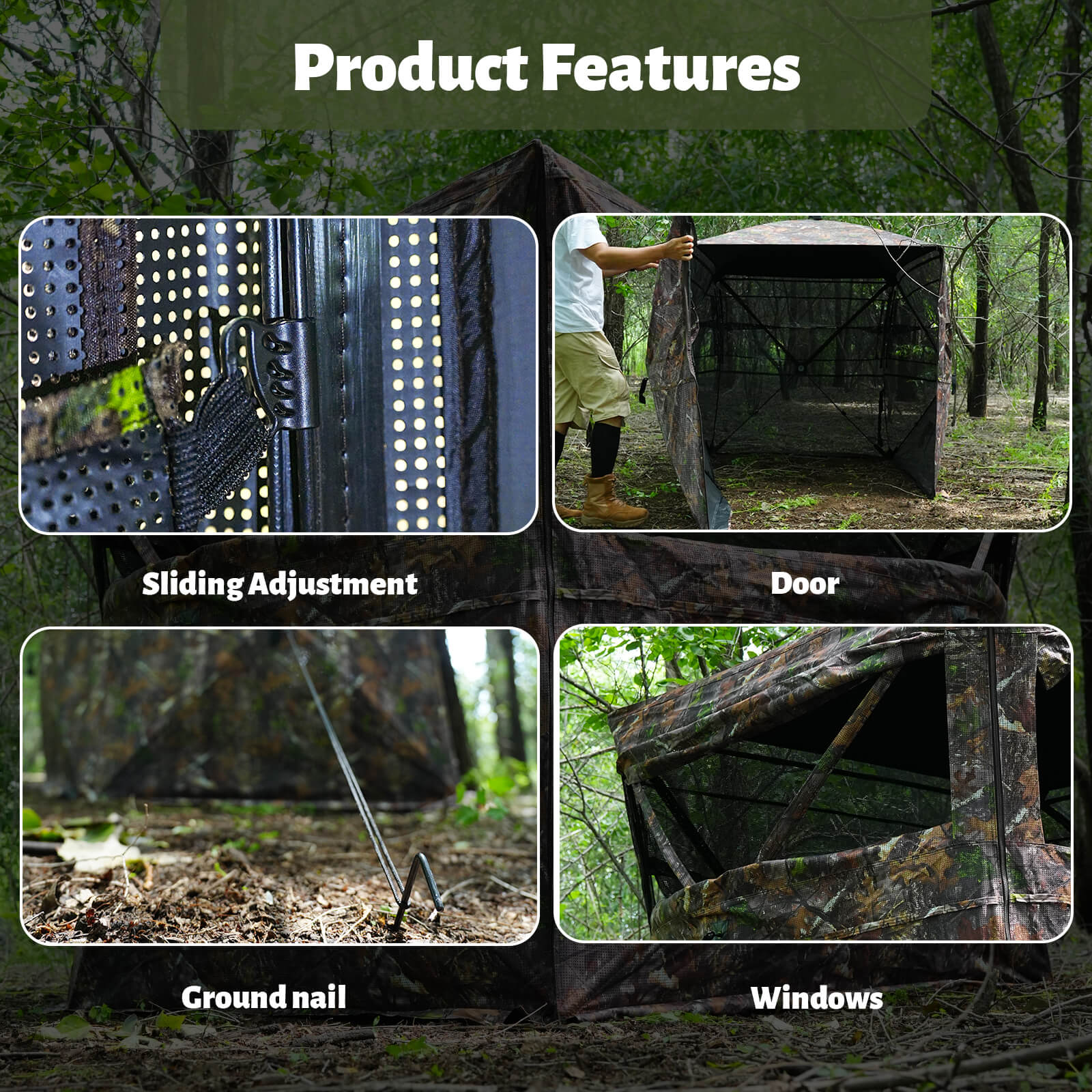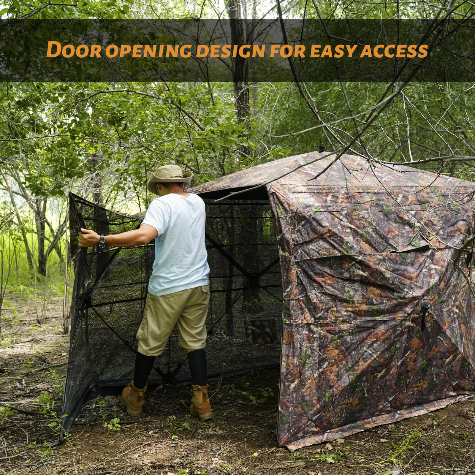 The tent features multiple viewing panels that allow a full 360° field of vision, helping you track movement without blind spots.