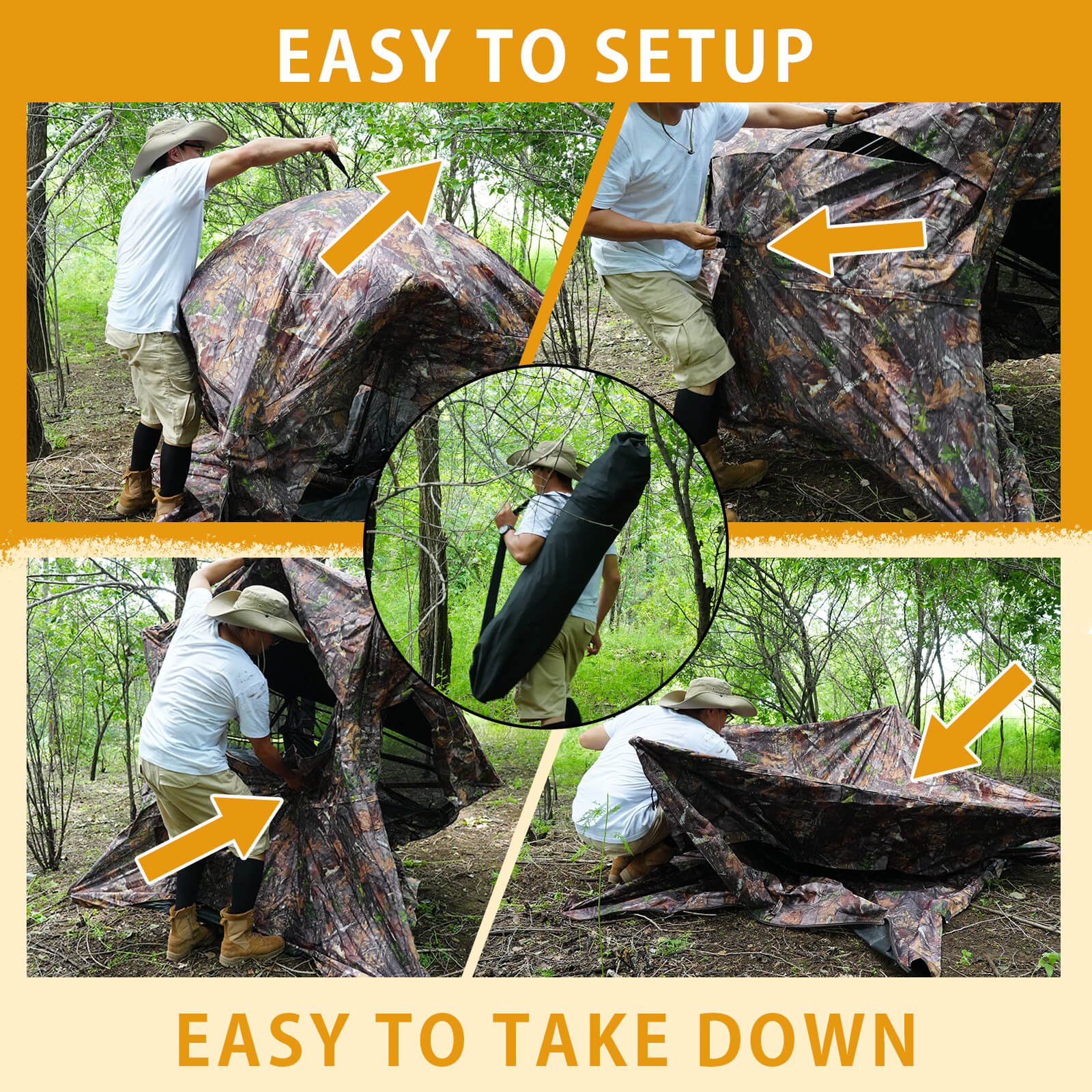 This portable hunting blind is designed for hunters who need quick setup and full visibility in the field. With its lightweight design and 360° viewing system, it provides a flexible and efficient hunting experience.