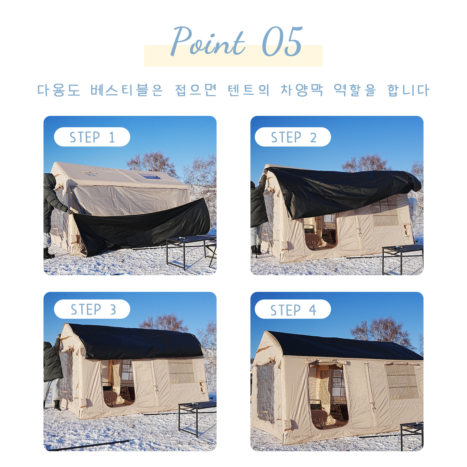 Convenient inflatable design: Equipped with an air pump, it features high setup efficiency. Compared with traditional frame tents, it saves more physical effort, making it ideal for camping beginners or users who pursue convenience.